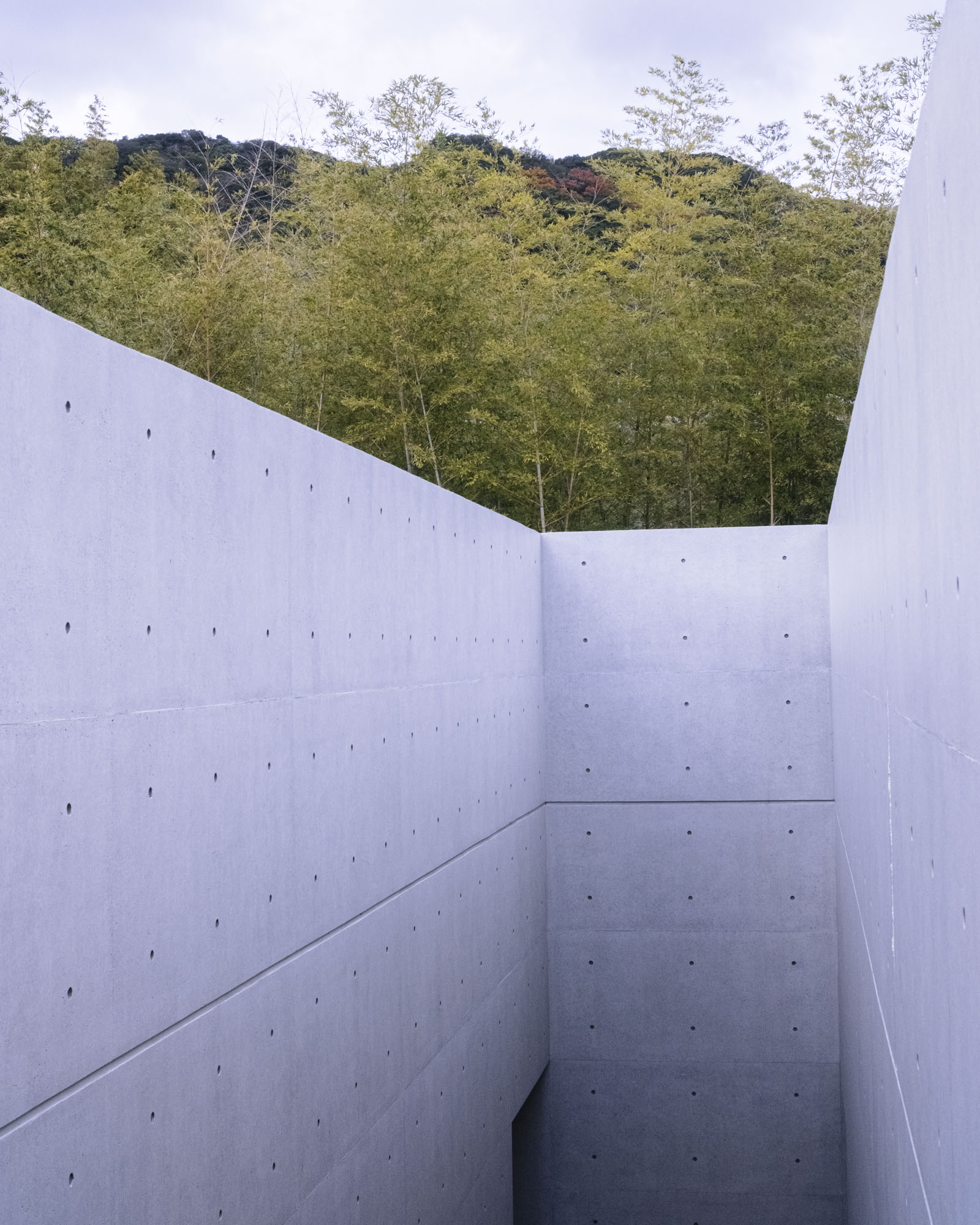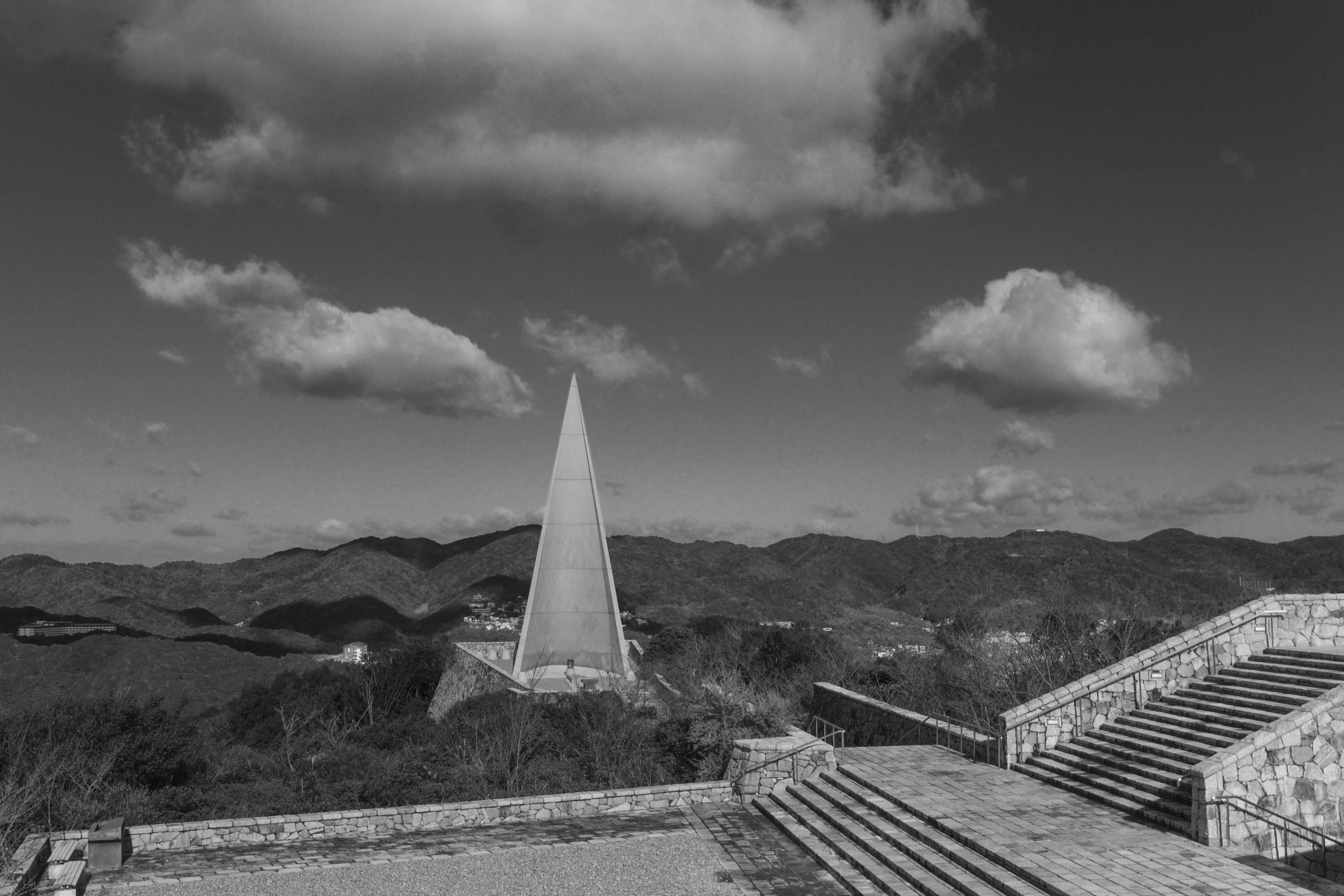 On the southern ridge of Awaji, about one hour from Shigeru Ban’s buildings, take a small windy road up on an unassuming mountain until you reach Wakoudo-no-hiroba Park. The parking lot already reveals in the distance why you came so far, a small but impressive structure by one of Japan’s undefeated OGs of architecture: Kenzo Tange. Upon its completion the structure was engulfed by some controversy, with Tange refusing to attend the opening ceremony and the building never being introduced in architectural journals at his request. Due to this, it is now known as one of Tange’s "forgotten works."